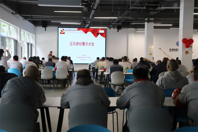 03全體員工須警惕,堅定樹立紅線意識,嚴(yán)守公司管理規(guī)定及國家法律法規(guī)。堅持嚴(yán)格基調(diào),對“四風(fēng)”問題零容忍,讓鐵規(guī)硬杠成為“高壓線”,爭當(dāng)廉潔合規(guī)、充滿激情的蕪船人。
