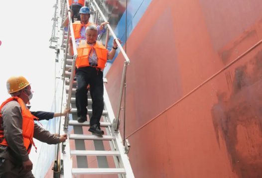 受南京長(zhǎng)江大橋通航限制,49900噸散貨船應(yīng)利用當(dāng)前長(zhǎng)江水位較低的有利時(shí)機(jī)通過(guò)大橋,實(shí)現(xiàn)按期交船。蕪湖市人民政府、江蘇省海事局等相關(guān)主管部門對(duì)過(guò)橋事宜高度重視,深入貫徹落實(shí)“學(xué)黨史、悟思想、辦實(shí)事、開新局”的總體要求,多次組織方案評(píng)審。6月21日上午,蕪湖市人民政府程剛副市長(zhǎng)、江蘇海事局王士明副局長(zhǎng)深入蕪湖造船廠,現(xiàn)場(chǎng)指導(dǎo)49900噸散貨船(鼎鑫105輪)船隊(duì)進(jìn)行長(zhǎng)江拖帶航行試驗(yàn)演練和驗(yàn)證工作。急企業(yè)之所急、解企業(yè)之所憂,支持和服務(wù)企業(yè)發(fā)展。通過(guò)長(zhǎng)江航行演練和驗(yàn)證,表明49900噸船及船隊(duì)具有良好的旋回性、穩(wěn)定性和制動(dòng)性,且試航團(tuán)隊(duì)經(jīng)驗(yàn)豐富、配合默契。經(jīng)過(guò)專家現(xiàn)場(chǎng)評(píng)審,海事部門充分評(píng)估,快速辦理水上水下活動(dòng)(拖航)許可手續(xù),并于21日下午開始長(zhǎng)江拖帶航行。